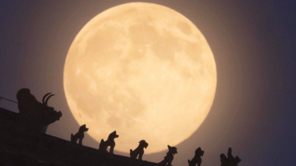 本年11月5日,在黑龙江省皆皆哈尔市拍摄的“超等月亮”。\n | 王勇刚 摄
