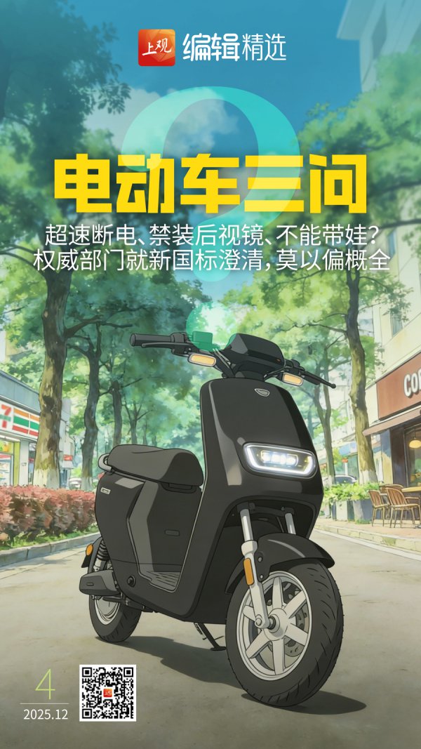 电动车新国标握行,网传超速断电、禁装后视镜、不行带娃?巨擘回话来了